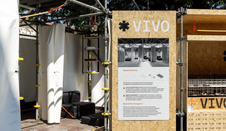 Il progetto VIVO propone una soluzione abitativa temporanea pensata per essere installata rapidamente, anche all’interno di palestre, entro 48 ore.
