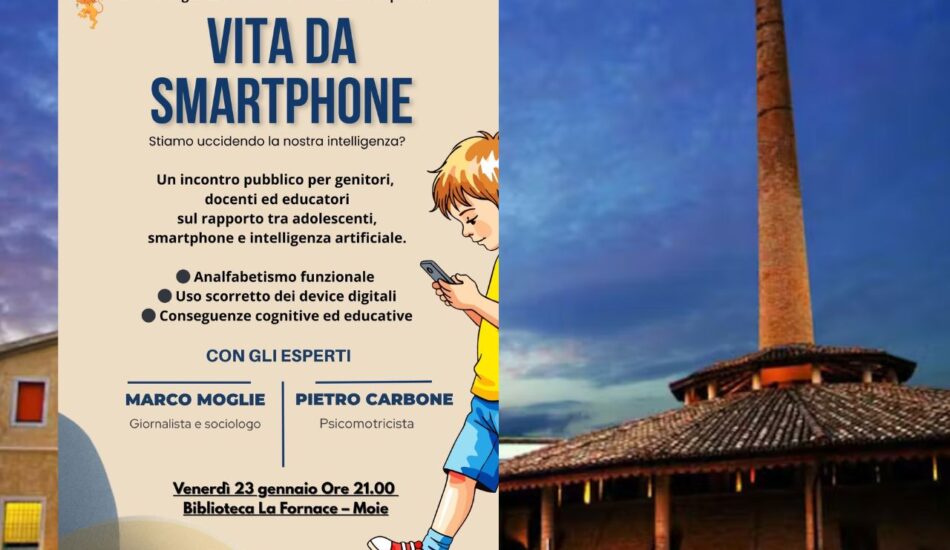 Venerdì 23 gennaio alle ore 21.00 “Vita da smartphone. Stiamo uccidendo la nostra intelligenza?” con Moglie e Carbone, tra sociologia e psicomotricità