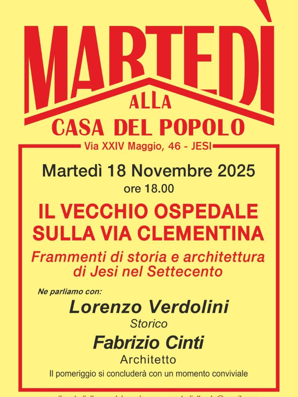 In vista di una soluzione che , speriamo, sia utile per la città e ampiamente condivisa, alla Casa del Popolo, martedì 18 novembre alle 18:00 verranno ripercorsi i momenti salienti della storia di questo importante edificio, risalendo al periodo in cui è stato costruito e dell’importanza della via Clementina – attuale corso Matteotti – su cui è sorto.