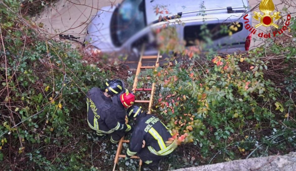 Auto nel fosso, conducente salvato dai vigili del fuoco a Fabriano