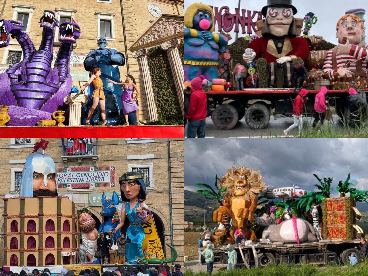 Sul gradino più alto del podio, Carro Centro Storico posiziona i personaggi nati dalla mente del regista Tim Burton. Una sposa cadavere bagnata e fortunata che porta il Carro alla vittoria per il secondo anno di fila e alla conquista del Premio Morichelli. A seguire le imprese di Hercules curate dal Carro San Bartolomeo, e Carro San Giovanni al terzo posto con Willy Wonka e la sua Fabbrica di cioccolato. Infine, i simboli dell’Impero Egizio e Romano portati in Piazza da Carro Badia Colli ed i personaggi del film Madagascar di Carro San Michele.